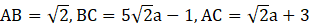 Dla tejże wartości a punkt B zawiera się w odcinku AC.