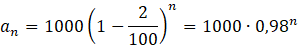 W tym zadaniu musisz zapisać wzór na cenę towaru, jeśli kosztuje 1000 zł, a jego cena będzie maleć o 2% tygodniowo.