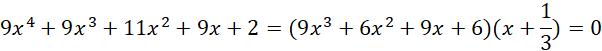 Znajdź wymierny pierwiastek równania zgodnie i skorzystaj z twierdzenia o pierwiastkach wymiernych, które mówi, że wielomian o współczynnikach całkowitych ma pierwiastek wymierny