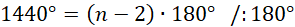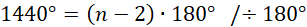 W tym zadaniu należy ile boków ma wielokąt foremny o sumie miar kątów wewnętrznych równych 1440°.
