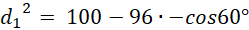 Skorzystaj z twierdzenia cosinusów: