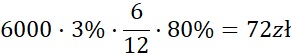 W tym zadaniu kwotę początkową pomnóż przez oprocentowanie roczne przemnożone przez okres na jaki zostały te środki wpłacone, a na koniec pomnóż razy 80%, ponieważ 20% odsetek to podatek.