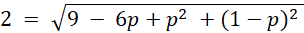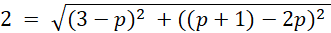 Ustal, jaką wartość może przybrać p, aby warunki: A = (p, 2p), B = (3, p + 1), |AB| = 2 były spełnione.