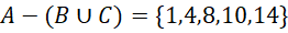 Wypisz wszystkie elementy każdego ze zbiorów podanych w treści zadania, a następnie wyznacz zbiór, w którym znajdują się elementy zbioru A bez elementów zbiorów B lub C.