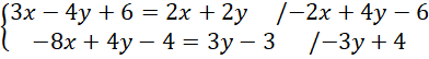 Ustal, czy rozwiązaniem układu równań jest para liczb o różnych znakach.