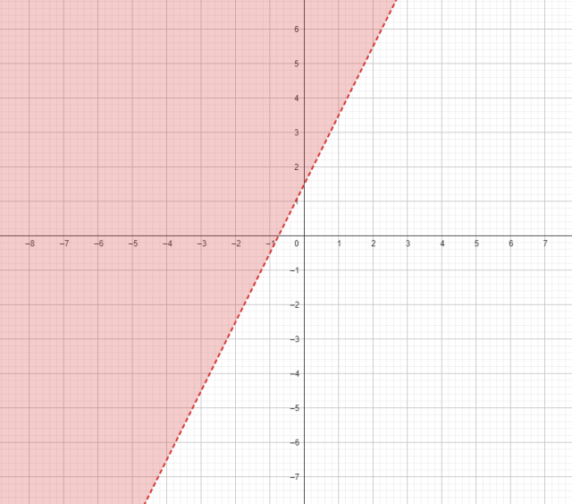 Wyznacz obszar płaszczyzny, w którym punkty spełniają nierówność 4x+2y>3. Następnie sprawdź, czy odcinek AB o końcach A(20,5)i B(20,30)należy do tego obszaru.