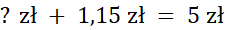 Uzupełnij znak zapytania odpowiednią liczbą: ? + 1,15 = 5.