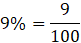 Podziel 9 przez 100, a następnie skróć ułamek.