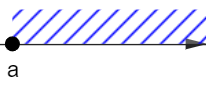 Przedział jest ograniczony z lewej strony, więc jest to przedział lewostronnie domknięty. Liczba x musi być większa lub równa a, żeby należeć do zbioru. Na osi liczbowej przedział zamknięty zaznacz wypełnionym kółkiem, a przedział otwarty kółkiem niewypełnionym.