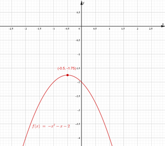 Sporządź szkic wykresu funkcji kwadratowej f(x) = –x2 – x – 2, na podstawie którego odczytaj zbiór tych argumentów, dla których funkcja nie przyjmuje wartości ujemnych.