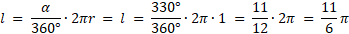 Oblicz długość łuku wyznaczonego na okręgu o promieniu 1 przez kąt środkowy o mierze 330°.