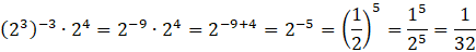 W tym zadaniu musisz obliczyć wartość wyrażenia (23)-3 ∙ 24 i zapisać prawa działań na potęgach, z których skorzystałeś.