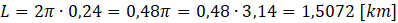 Oblicz przybliżoną długość okręgu o podanym promieniu i zaokrąglij wynik do jednego miejsca po przecinku.