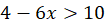 Odejmij obustronnie od nierówności 4, a następnie podziel obie strony przez -6. Przy mnożeniu/dzieleniu przez liczbę ujemną, pamiętaj o zmianie znaku nierówności. Zapisz jako przedział zbiór x, które spełniają podany warunek. Następnie wybierz trzy przykładowe liczby z tego zbioru – te spełniają nierówność i trzy spoza niego – te jej nie spełniają.