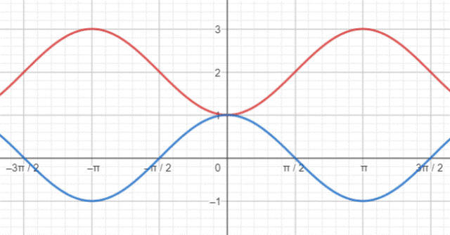 – kolor niebieski, wykonaj jego odbicie symetryczne względem osi OX i przesuń o 2 jednostki w górę.