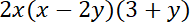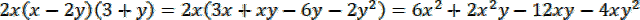 Pomnóż każdy wyraz znajdujący się w jednym nawiasie przez każdy wyraz z drugiego nawiasu, a następnie pomnóż każdy wyraz znajdujący się w powstałym nawiasie przez jednomian stojący przy nim.