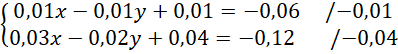 Każde z równań przedstaw w najprostszej postaci. Zauważ, że całe pierwsze równanie należy pomnożyć przez (-3), aby współczynniki znajdujące się przy