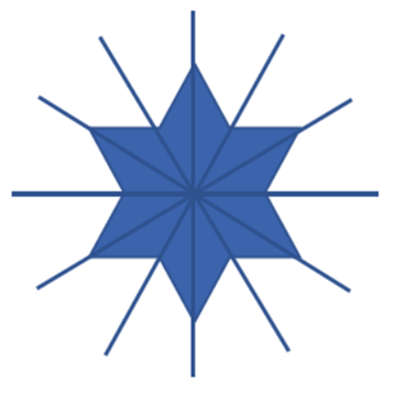 Pamiętaj, że oś symetrii musi dzielić figurę na dwie identyczne części. Po narysowaniu osi symetrii, tak jak na rysunku można policzyć ich liczbę.