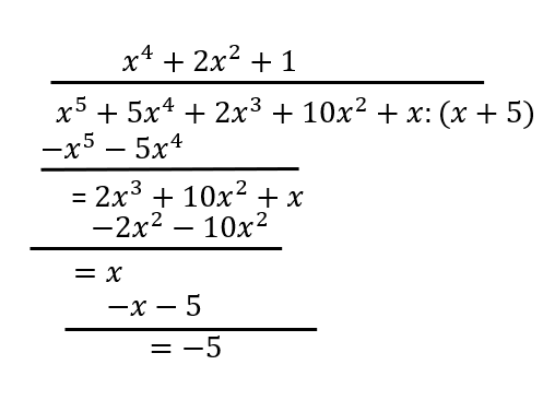 (x5 + 5x4 + 2x3 + 10x2 + x) = (x + 5)(x4 + 2x2 + 1)–5