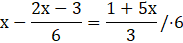 Najpierw pomnóż obustronnie równanie przez 6, aby ułatwić sobie obliczenia, a następnie przenieść wyrażenia z x na jedną stronę, a pozostałe wyrażenia na drugą: