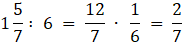 Przedstaw liczbę mieszaną jako ułamek niewłaściwy i wykonaj dzielenie, pamiętając że przy dzieleniu ułamków mnoży się przez odwrotność.
