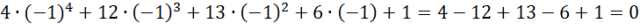 Znajdź pierwiastek całkowity wśród dzielników wyrazu wolnego tj. -1, 1.