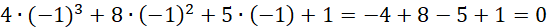Znajdź pierwiastek całkowity wśród dzielników wyrazu wolnego tj. --1, 1.