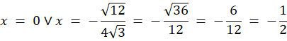 Wyłącz x przed nawias. Skorzystaj z faktu, że iloczyn dwóch liczb jest równy 0, gdy przynajmniej jedna z nich jest równa 0. W otrzymanym wyniku pozbądź się niewymierności z mianownika.