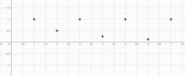 . Zaznacz kolejne wyrazy ciągu na wykresie, pamiętaj, że wykres ciągu zawsze składa się z punktów, nie należy ich łączyć.