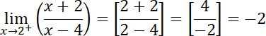 , a następnie skróć nawias powtarzający się w liczniku i mianowniku. Następnie zacznij od badania dziedziny funkcji, sprawdź, czy istnieją jakieś punkty, w których funkcja nie przyjmuje wartości (tzn. jest w nich nieciągła). Tu jest to x = 4. Występowanie asymptot pionowych badasz poprzez sprawdzanie granic przy x dążącym do punktu nieciągłości z prawej i lewej strony. Po podstawieniu w granicach wartości nieco większej i nieco mniejszej niż 4 otrzymasz odpowiednio nieskończoność oraz minus nieskończoność. Są to granice niewłaściwe. Stąd wniosek, że w punkcie