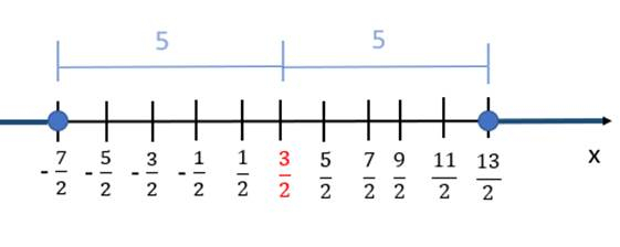 W tym zadaniu najpierw należy zapisać nierówność w takiej postaci, aby po jednej stronie było tylko wyrażenie w wartości bezwzględnej, gdzie liczba x jest na początku wyrażenia, a po drugiej, reszta część nierówności. Należy znaleźć na osi liczbowej wszystkie liczby x, których odległość od liczby 5 jest większa od