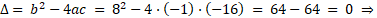 równy zero, więc istnieje jedno (podwójne) rozwiązanie.