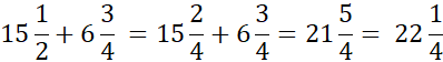 Rozszerz ułamki do mianownika 4 i wykonaj dodawanie. . Liczby całkowite znajdujące się przed ułamkami dodaj do siebie niezależnie od ułamków.