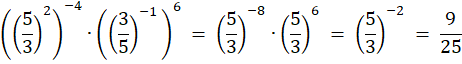 Najpierw zapisz pierwszy i drugi czynnik jako jeden wykładnik i pozbądź się nawiasu, korzystając z pierwszego wymienionego prawa. Następnie skorzystaj z drugiego z praw i wylicz wartość wyrażenia.