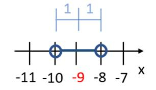 |x + 9| < 1 ⇔ x Î <–10,–8>