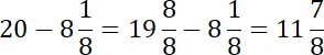 Gdy naszą odjemną jest liczba naturalna, to zamieniamy jedną z całości na ułamek niewłaściwy (o takim samym mianowniku jak odjemnik, aby można było je odjąć), a następnie od całości odejmujemy całości, a od ułamka ułamek. Pamiętaj o skróceniu ułamka w wyniku końcowym.