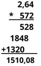 Ułamki dziesiętne mnożymy pisemnie przez liczby naturalne tak, jak mnożylibyśmy liczby naturalne, a dopiero w wyniku oddzielamy przecinkiem tyle miejsc, ile ich było w liczbie dziesiętnej.
