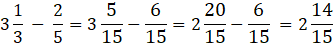 Przy odejmowaniu ułamków musisz w pierwszej kolejności sprowadzić je do wspólnego mianownika, następnie odejmujesz całości od całości i licznik od licznika, a mianowniki pozostawiasz bez zmian.