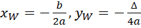 Funkcję przedstaw w postaci kanonicznej i wyznacz współrzędne wierzchołka jej paraboli korzystając ze wzorów i .