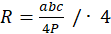 Zauważ, że P ≠ 0, ponieważ doszłoby do dzielenia przez 0, oraz abc ≠ 0, ponieważ nie można by było jednoznacznie wyznaczyć P (wzór zredukowałby się do R = 0).