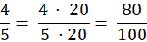 W tym zadaniu rozszerz mianowniki ułamków tak, by otrzymać w każdym liczbę 100.