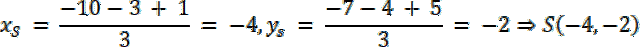 W tym zadaniu skorzystaj ze wzoru na współrzędne środka ciężkości trójkąta.