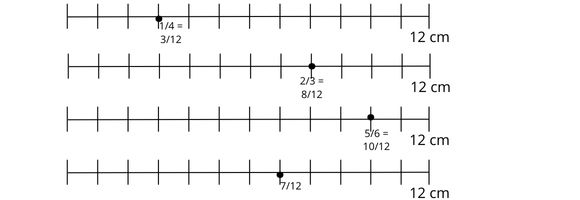 Narysuj 4 odcinki o długości 12 cm i zaznacz na nich kolejno