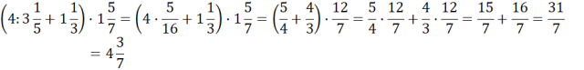 W tym zadaniu musisz wykonać dzielenie i dodawanie w nawiasie oraz mnożenie ułamków.