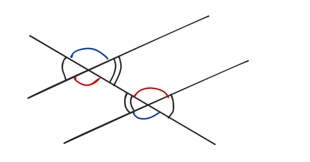 W rysunku z podręcznika prawdopodobnie jest błąd i zostały narysowane tam kąty odpowiadające, zamiast naprzemianległych, które widać na rysunku w rozwiązaniu.