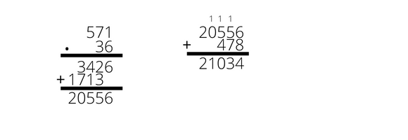 Iloczyn to wynik mnożenia. Musisz więc w pierwszej kolejności 571 pomnożyć przez 36. Do otrzymanego wyniku, czyli 20556 musisz dodać 478. Wynik to 21034.