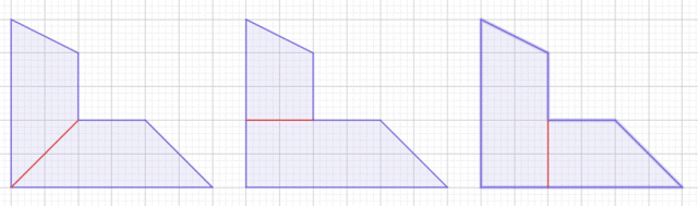 W tym zadaniu musisz przedstawić 3 sposoby podzielenia figury z ilustracji na dwa trapezy.