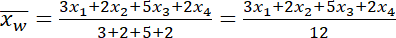Średnią ważoną liczb x1, x2, …, xk odpowiadającymi im wagami n1, n2, …, nk, będącymi liczbami dodatnimi, określamy wzorem: