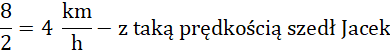 Oblicz, z jaką prędkością szedł każdy z nich, dzieląc dystans, który przeszli przez czas, w jakim przeszli dany dystans. Następnie porównaj podane prędkości, okazuje się, że Jacek szedł szybciej od Placka.