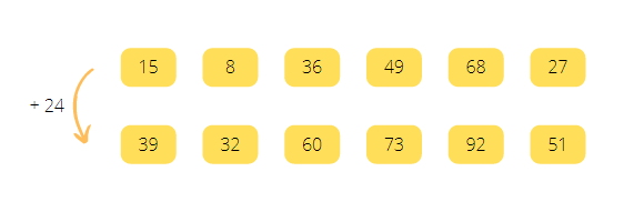 Do każdej górnej liczby musisz dodać 24, a wynik zapisać pod daną liczbą.